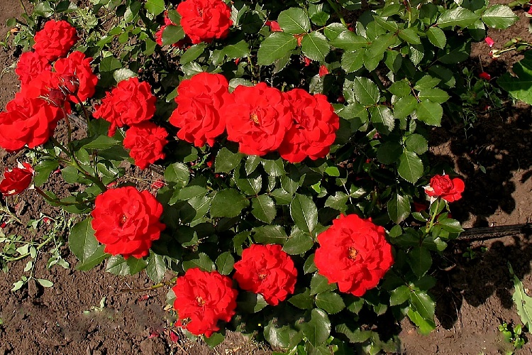 플로리분다 품종입니다. 토양이 건조하지 않아 혹독한 겨울도 잘 견딥니다. 병충해에 강합니다. 여름과 가을 내내 낮은 덤불에서 밝은 붉은색 꽃이 핍니다.