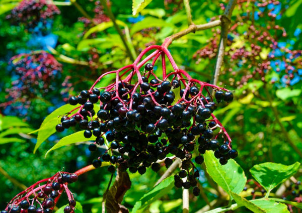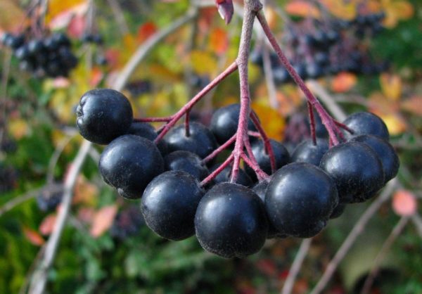 둥근 수관을 가진 낙엽 관목/소교목입니다. 9월 초에 흑자색 송이를 잘라 천이나 종이 위에 펼쳐서 통풍이 잘 되는 곳에서 말립니다. 2~3일 후 오븐(55~65°C)에서 말립니다. 줄기를 잘라 봉지에 담습니다. 6개월 동안 다음과 같은 성분이 풍부합니다.