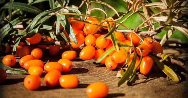 가을에는 "태양의 키스"로 알려진 밝은 노란색과 주황색 열매가 열리며 약효가 뛰어나고 맛이 과즙이 많습니다.