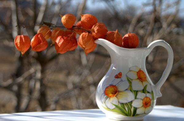 피살리스는 층층이 익기 때문에 수확 기간이 길어집니다. 열매의 말린 "랜턴"과 짙은 주황색이 기준입니다. 가을 서리는 피살리스가 견디지 못하므로 수확은 가을 서리 전에 완료해야 합니다. 열매가 얇아져 열매에 달라붙을 때까지 말립니다. 열매를 껍질째 1~2겹으로 겹겹이 쌓아 통풍이 잘 되는 상자에 넣고 12~14°C에서 2~5개월 동안 보관합니다. (가장 중요한 것은 상한 열매는 즉시 제거하는 것입니다.)