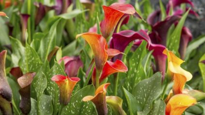 칼라 백합은 흰색에만 국한되지 않습니다. 검은색, 파란색, 초록색, 노란색, 분홍색, 보라색 등 다양한 색상의 품종이 있습니다. 화단과 정원뿐 아니라 가정과 아파트에서도 재배됩니다. 그늘이나 생육 환경에 관계없이 칼라 백합은 독특한 모습을 보입니다.