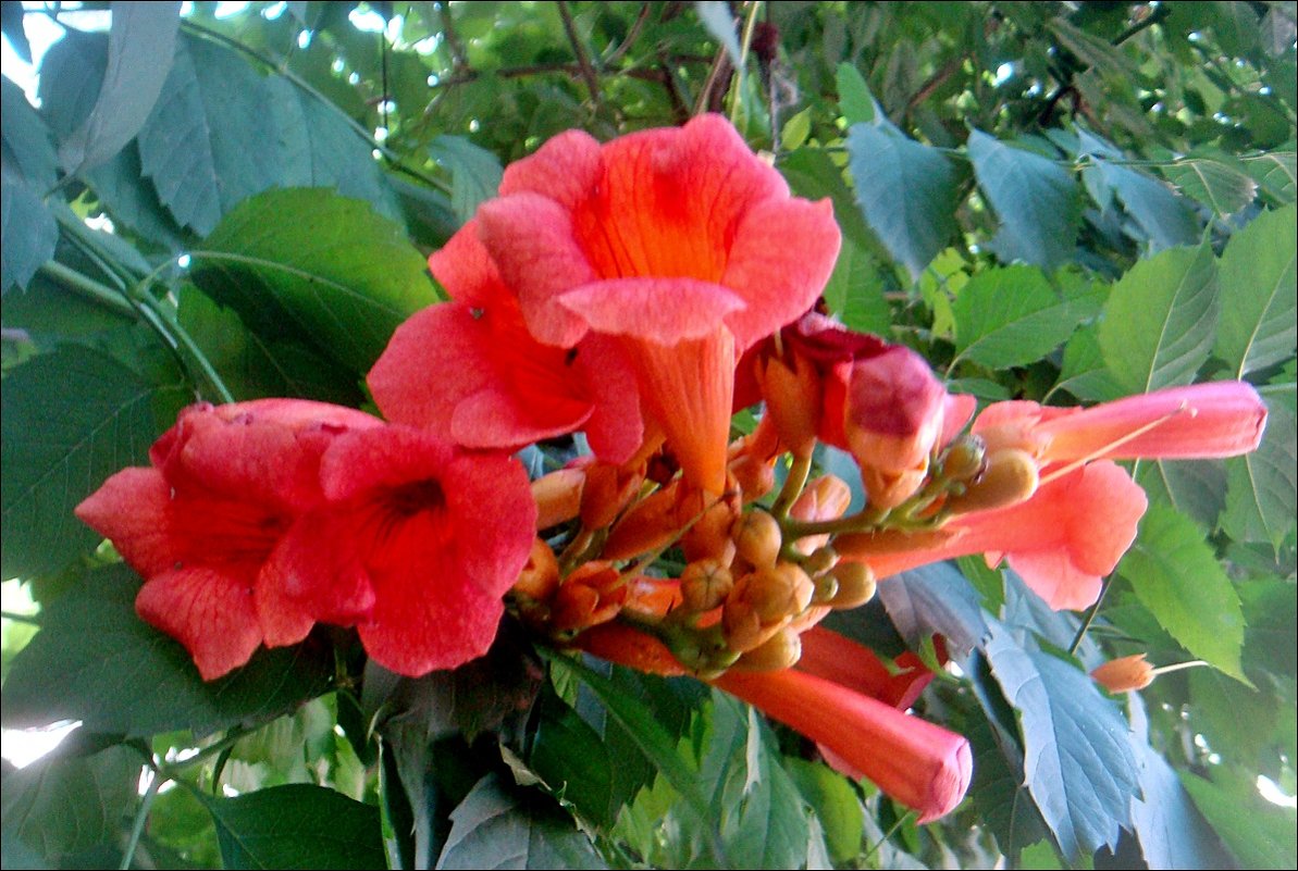 캠시스는 눈부시게 아름다운 식물입니다. 사진으로는 꽃의 풍부한 색감을 다 담을 수 없기 때문에 직접 봐야 합니다. 여름 내내 꽃이 덩굴을 장식합니다. 한 그루의 식물에서 새싹, 꽃, 심지어 씨앗 꼬투리까지 동시에 볼 수 있습니다. 이는 덩굴이 나이에 따라 새순에서 꽃이 피는 시기가 다르기 때문입니다. 캠시스는 겨울철에 특별히 강하지 않으므로 월동 준비는 가을에 해야 합니다.