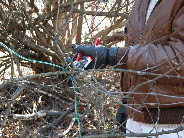 - 식물의 꼭대기를 형성하기 위해, 성장기 동안 가지를 지지대에 묶고 원하는 방향으로 향하게 합니다.