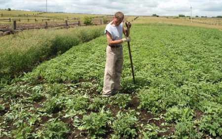 - 습한 양토가 우세한 지역에서는 감자를 심기 위해 능선을 만들고, 심는 재료를 6~10cm 깊이로 묻습니다.