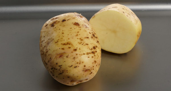 재배 지역에 따라 덩이줄기의 무게는 평균 90~150g입니다. 껍질은 얇고 눈은 얕습니다. 열악한 환경이나 부적절한 관리로 인해 너무 크게 자라지 않는 한, 덩이줄기는 황갈색이며 매끄럽고 껍질과 감자가 만나는 부분은 연녹색입니다. 전분 함량이 높음에도 불구하고 껍질을 벗기거나 조리해도 색이 어두워지지 않습니다.