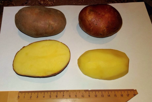 성숙한 덩이줄기는 분홍색입니다. 제대로 재배되면 감자의 눈은 거의 없을 것입니다. 벡터 품종은 주로 중부 지역에서 재배됩니다. 이 품종은 파종 후 완전히 익기까지 최소 100일이 걸리기 때문에 중후반 품종으로 분류됩니다.