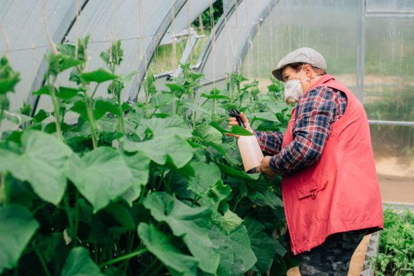 - 야외에 있는 식물에 처리가 필요한 경우, 바람 없는 날이 좋습니다. 온실의 경우 조건이 다릅니다. 환기는 되어야 하지만 외풍은 피해야 합니다.