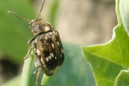 최대 4mm 길이의 갈색딱정벌레는 딸기잎벌레입니다. 딸기나무 잎에 앉아 잎을 갉아먹습니다. 진딧물도 그곳에 둥지를 틀고 있습니다. 딸기 가공이러한 해충을 방제하는 방법은 요오드 수용액이나 니트로펜 또는 누렐-D를 분무하는 것으로 제한됩니다.