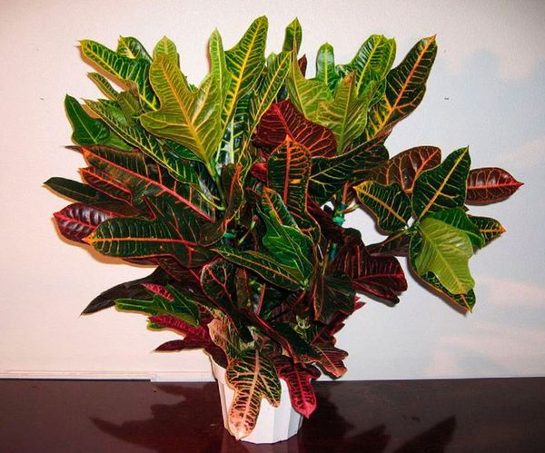 - '페트라' 품종. 잎이 갈라지는 인기 품종입니다. 이 나무는 아름다운 수관을 형성하며 빠르게 자랍니다. 잎맥과 가장자리는 노란색을 띠고, 잎의 나머지 부분은 진한 녹색, 적갈색, 붉은색을 띱니다. 햇빛이 부족하면 잎맥이 흰색으로 변하며 녹색으로 변합니다. 고품질 조명을 사용하면 자연스러운 모습을 되찾는 데 도움이 됩니다.