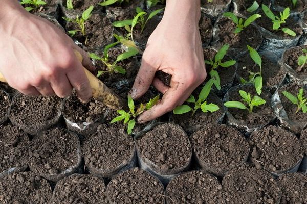 - 작업 시작 전날 묘목에 물을 주어야 합니다. 작업 당일에는 더 큰 용기와 산업용으로 처리된 흙을 준비합니다.