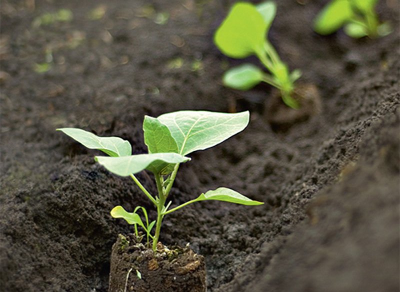 땅에 옮겨 심을 때쯤이면 7~8개의 본잎이 나와 있어야 합니다. 심는 시기가 늦어지면 가지가 생장기를 마치고 익을 시간이 부족합니다. 창턱에 너무 오래 두면 모종이 쭉쭉 뻗어 나갈 것입니다.