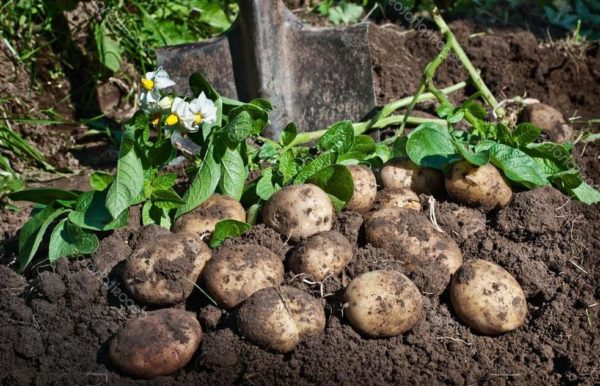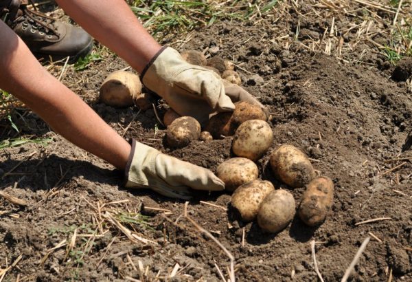 완전히 익은 감자(저장용)는 여러 가지 방법으로 수확합니다. 좁은 지역에서는 삽이나 쇠스랑으로 덤불을 파내고, 넓은 지역에서는 특수 장비나 기계를 사용합니다. 두 번째 방법은 작업 속도를 높이고 단순화하지만, 감자의 기계적 손상 위험이 커집니다. 콤바인은 손상 위험이 훨씬 높기 때문에 대규모 산업 농장에서만 사용됩니다.