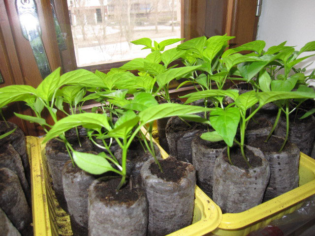 씨앗 발아 기간 동안 최적의 온도(+23ºC…+25ºC)를 유지하는 것이 중요하며, 고추에 더 나은 미기후를 조성하기 위해 용기를 유리나 필름으로 덮습니다.
