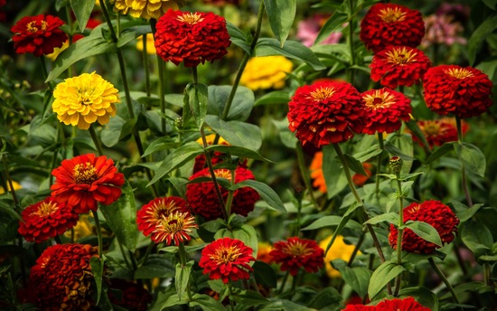 - 키가 큰 품종(캘리포니아 지니아)은 정원의 보기 흉한 부분을 쉽게 가릴 수 있습니다. 이 품종은 배경에 심습니다.