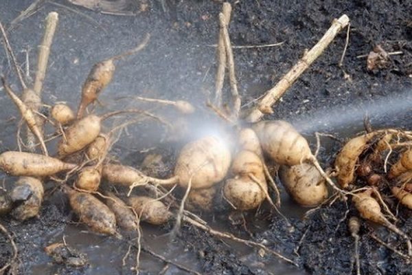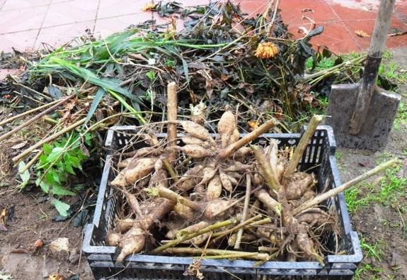 흙을 쌓은 후, 식물은 아름답게 꽃을 피우고 무성한 수관으로 눈을 즐겁게 합니다. 첫서리가 내린 후 덩이줄기를 캐냅니다. 이 작업은 지상부가 시든 후 첫 주 안에 완료해야 합니다.