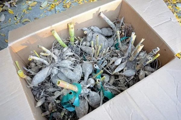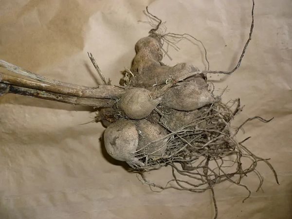 - 먼저, 뿌리가 굳을 때까지 전구를 말리고, 수분이 모두 제거된 후 건조하고 따뜻한 방에 며칠 동안 두어 뿌리가 굳도록 합니다.