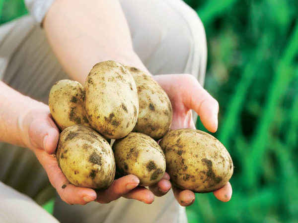- 꽃이 피자마자 바로 감자를 캐서 먹을 수 있습니다. 하지만 수확해서 저장하기에는 너무 이릅니다. 덩이줄기의 크기를 가늠하려면 밭의 여러 곳에서 2~3개의 감자를 캐세요. 모든 것이 잘 된다면 필요한 만큼 캐서 감자가 계속 자라도록 두세요. 이때가 감자가 영양분을 흡수하고 껍질을 튼튼하게 하는 시기이기 때문입니다.