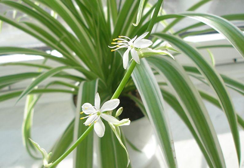 이 식물은 실내 공기를 정화하고 유해 미생물을 중화하는 것으로도 알려져 있습니다. 또한 이른 봄부터 가을 중순까지 아름다운 꽃을 피웁니다. 클로로피툼은 포기나누기와 꺾꽂이로 쉽게 번식하며, 원하는 대로 가지치기도 가능합니다.