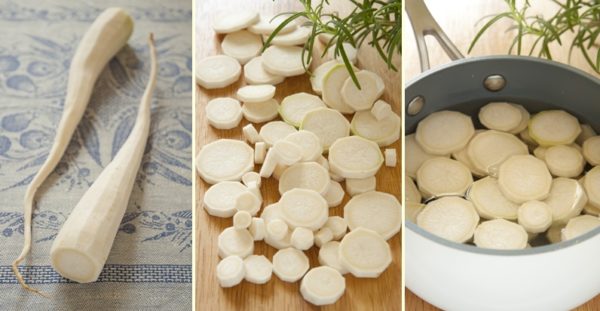 파슬리 뿌리는 다양한 치즈, 아몬드, 사과, 버터와 잘 어울립니다. 고기와 함께 곁들이면 독특한 풍미를 더합니다. 수프에는 파슬리와 셀러리 대신 사용하거나 단독으로 사용합니다. 야채 스튜나 으깬 감자의 향료로도 사용됩니다.