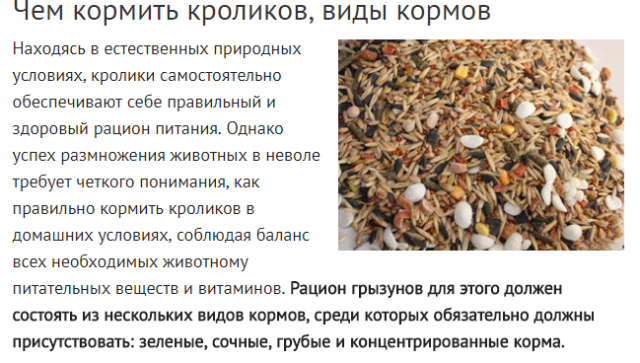 [sc name=»info» text=»최대 사료량은 비육 기간 마지막 10일 동안만 비축됩니다. 건초를 제외한 모든 사료와 다육식물, 조사료는 여기에 적합합니다. 초보자를 위한 집에서 토끼에게 먹이를 주는 방법에 대한 자세한 내용은 온라인에서 확인할 수 있습니다.»]