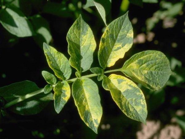 - 흔하고 접힌 형태입니다. 이 병은 세 가지 다른 바이러스 또는 그 조합에 의해 발생할 수 있습니다. 잎에 진한 색에서 밝은 색까지 다양한 색조의 반점이 나타납니다. 또한, 이 병은 다양한 바이러스 균주에 의해 발생합니다. 기온이 높고 감자가 장시간 직사광선에 노출되면 증상이 완화될 수 있습니다.