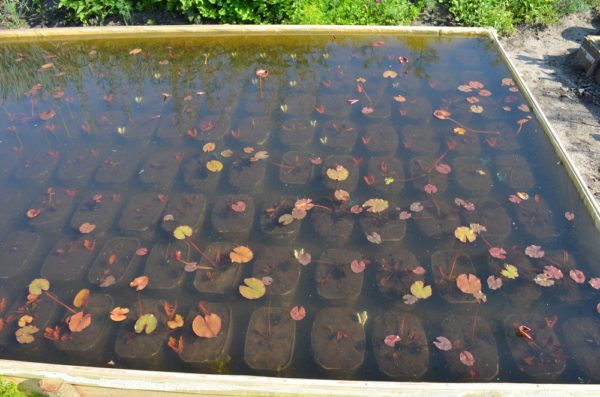 공간이 부족하면 수련이 많이 자라지 않으므로 용기에 작물을 심는 것이 좋습니다. 하지만 5리터 메시 용기(대형 품종의 경우 용량이 큰 바구니를 선택하는 것이 좋습니다)를 사용하면 5~6년 동안 뿌리가 자랄 수 있습니다.