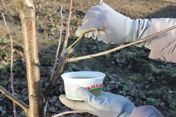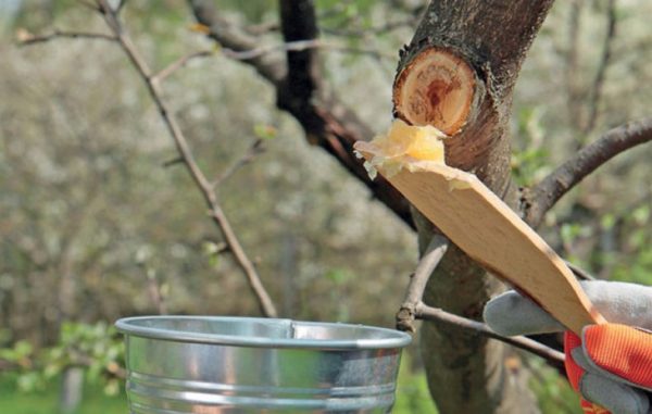 - 상처 부위와 상처 주변 나무껍질의 전체 표면을 3-5% 황산구리나 구리가 함유된 다른 제제로 소독합니다.