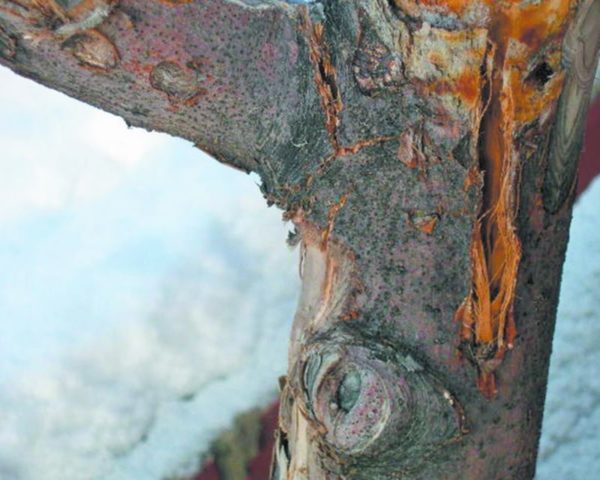 - 늦고 과도한 가지치기. 부적절하고 시기적절하지 않은 수관 형성은 목재의 성숙을 늦춥니다. 이로 인해 봄이 시작되면서 나무껍질이 갈라질 수 있습니다.