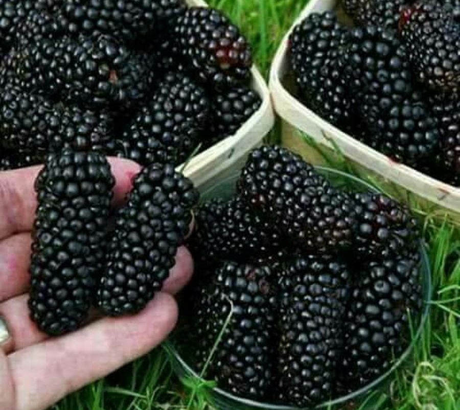 이 식물은 품종에 따라 크기가 조금씩 다른 큰 열매를 풍성하게 맺습니다. 열매는 복잡한 모양을 하고 있으며 보라색을 띱니다. 열매는 라즈베리나 블랙베리와 비슷한 구조를 가지고 있습니다. 과육은 즙이 많고 다육하며, 새콤달콤한 맛이 납니다. 씨앗은 매우 작습니다. 숙성이 여러 시기에 걸쳐 이루어지기 때문에 수확은 여름 내내 이루어집니다.