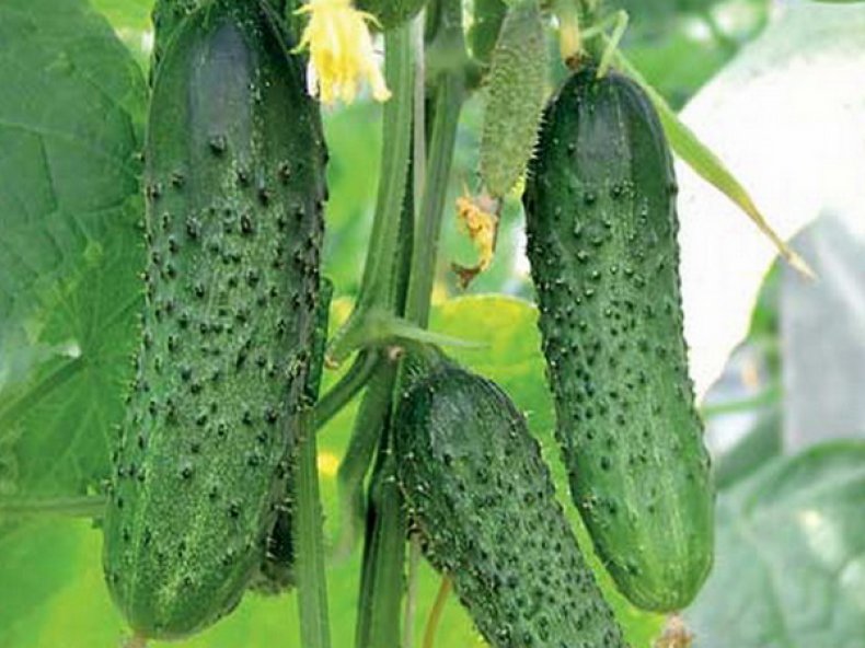 이 덤불은 강하고 긴 덩굴을 가지고 있습니다. 오랫동안 열매를 맺지만, 정기적으로 수확하는 것이 좋습니다. 그렇지 않으면 오이가 너무 크게 자랄 수 있습니다.