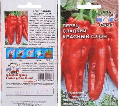 - "레드 엘리펀트" 고추는 붉은색과 22cm에 달하는 열매의 길이에서 이름을 따왔습니다. 고추는 원뿔 모양으로 아래로 늘어져 있습니다. 익은 고추의 무게는 130~200g입니다. 식물은 강건하여 키가 80~90cm에 달합니다. 제곱미터당 수확량은 6~7kg입니다. 모든 요리 및 산업용 가공에 적합합니다.