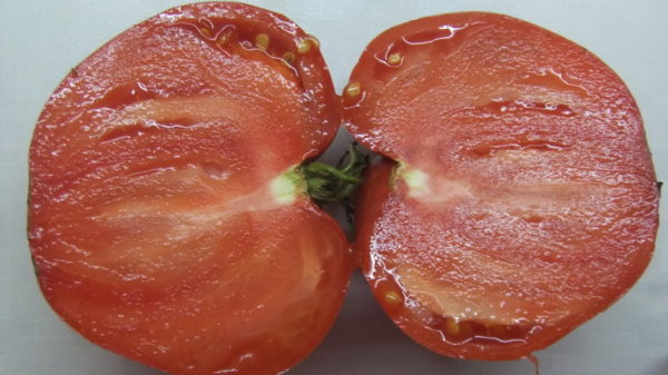 토마토는 붉고 납작하며 둥글고, 약간 골이 있으며, 듬성듬성하며, 평균 무게는 150g입니다. 덤불에는 작은 열매가 거의 없으며, 열매는 보통 300g 정도입니다. 4~6개의 씨앗 방이 있으며, 씨앗의 개수는 중간 정도입니다. 과육은 즙이 많고 물기가 없으며, 곡물이 없고, 껍질은 얇고 부드럽습니다. 맛은 훌륭합니다. 달콤하면서도 은은한 산미가 있고, 향은 풍부합니다. 수확량은 ㎡당 최대 5kg입니다.