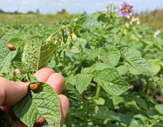 - 건조하고 바람이 없는 날씨에는 콜로라도 감자좀을 방제해야 합니다. 감자 잎은 건조해야 합니다.