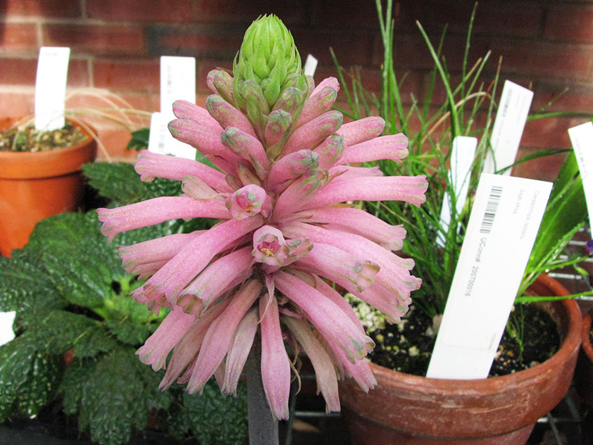 꽃자루 꼭대기에 작은 꽃들이 피어납니다. 이 꽃차례는 보통 빨간색, 주황색, 또는 노란색입니다. 하나의 꽃차례에서 10개에서 20개의 꽃봉오리가 피어나며, 이 꽃들은 서서히 피어납니다.