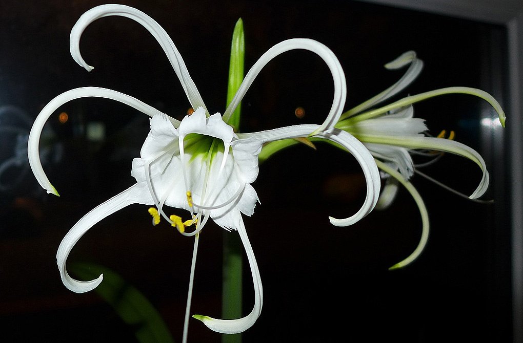 히메노칼리스 콤플레타(Hymenocallis completa)는 다른 식물들과 달리 화려한 꽃으로 눈길을 끄는 다소 특이한 식물입니다. 꽃은 긴 다리를 가진 거미를 닮았습니다. 꽃받침에는 길이 20cm에 달하는 여섯 개의 좁은 꽃받침 조각이 있습니다. 꽃받침 조각의 밑부분은 연한 녹색입니다.