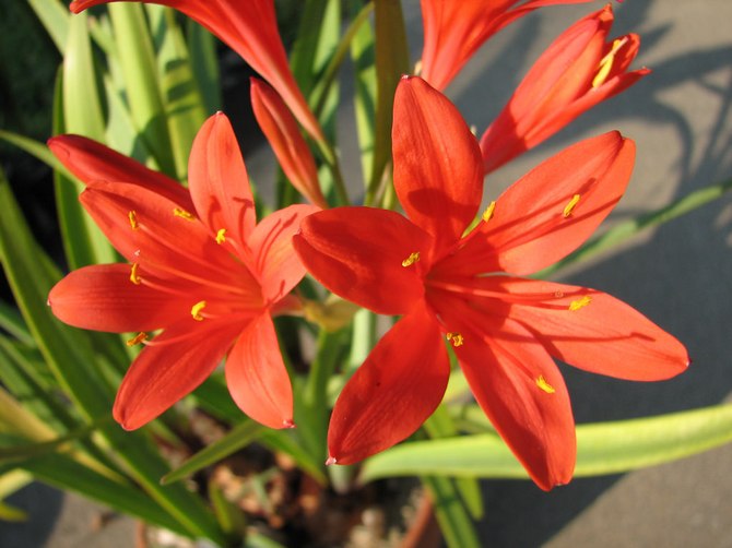 발로타(Vallota)는 수선화과(Amaryllidaceae)에 속하는 다년생 식물입니다. 타원형 구근은 표면에 얇은 갈색 비늘층을 형성합니다. 짙은 녹색 잎은 밑부분이 자줏빛을 띱니다. 작은 잎은 길이 60cm에 달합니다. 줄기 꼭대기에는 3개에서 9개까지 다양한 수의 꽃이 산형화서로 핀다.
