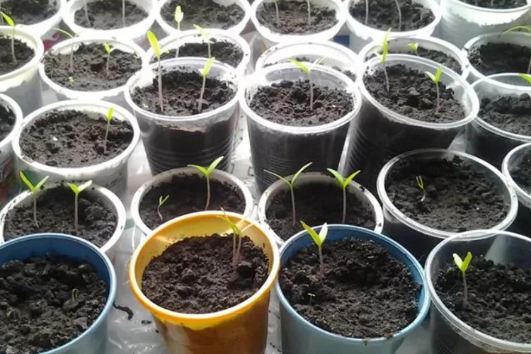 흙을 충분히 적신 후, 용기를 펼친 후 비닐 랩이나 유리로 덮습니다. 본엽이 2~3개 나오면 묘목을 개별 용기에 옮겨 심습니다. 안정적인 온난화 후, 묘목을 옮겨 심습니다.