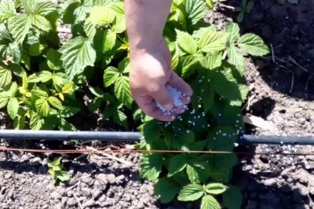 심기 전에 라즈베리 뿌리를 과망간산칼륨 용액에 담그고 바로 흙에 심으세요. 이 과정은 각 덤불마다 합니다. 덤불을 한 줄로 심으면 관리가 더 쉽습니다. 심은 후에는 따뜻한 물로 흙에 물을 주세요. 2주 후에 첫 번째 비료를 주세요. 어떤 식물 성장 촉진제든 괜찮습니다. 과인산비료나 칼륨 비료를 사용하는 경우가 많습니다.