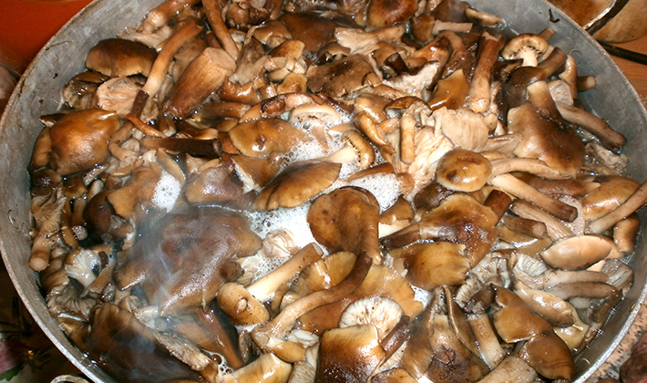 깨끗이 씻은 버섯은 잘 익혀야 합니다. 끓는 물에 넣고 10분간 데친 후 물을 갈아줍니다. 깨끗한 물에 넣고 부드러워질 때까지 30~60분간 데칩니다. 버섯이 대부분 바닥에 가라앉으면 불에서 내립니다.