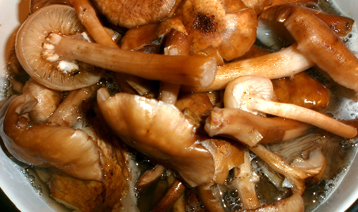 겨울철 꿀버섯 절임은 물이 아닌 두 번째 끓인 물(액)로 하는 것이 가장 좋습니다. 처음에 물을 빼지 않았다면, 남은 물은 유해한 독성 물질이 포함되어 있으므로 버리세요.