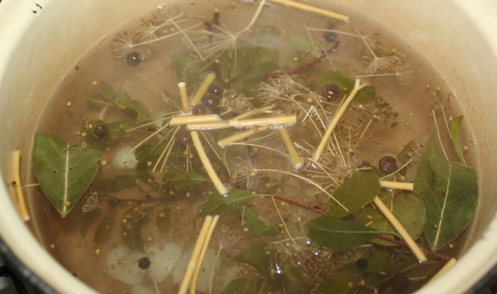 불을 끄기 전에 식초 30ml를 넣고 잘 저어줍니다. 혼합물을 소독한 병에 붓고, 더 큰 용기에 담아 추가 살균합니다. 1리터 병은 45분, 0.5리터 병은 35분 동안 살균합니다. 완성된 간식은 돌돌 말아 식힌 후 지하 저장고에 보관합니다.