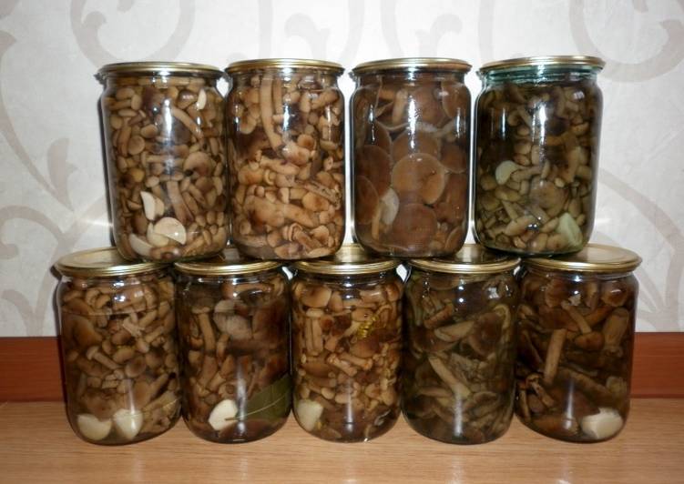 대량의 꿀버섯을 준비해야 할 때 일반적으로 저온 통조림을 사용합니다. 수확한 버섯을 겨울철 숙성하려면 다음 재료를 준비해야 합니다.