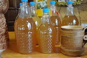 - 온도계를 사용하여 온도를 측정하세요. 섭씨 45도에 도달해야 합니다. 그런 다음 녹인 효모를 넣고 냄비를 따뜻하고 건조한 곳에 두세요. 발효가 일정 수준에 도달할 때까지 약 5일 동안 그대로 두세요.