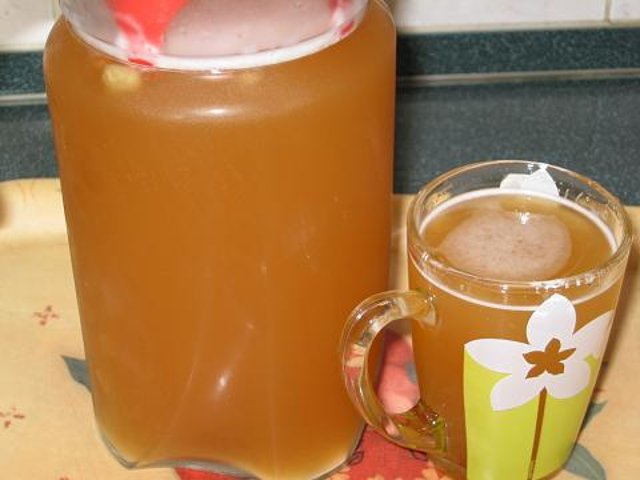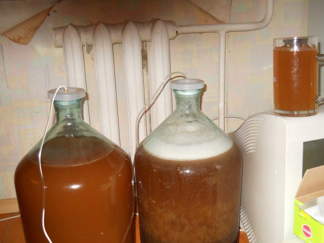 - 식힌 혼합물을 오크통에 붓고, 물에 희석한 젤라틴과 향신료(카다멈과 정향)를 넣습니다. 발효 과정이 의심스러우면 건조 효모를 넣어도 됩니다. 3주 동안 발효시킵니다.