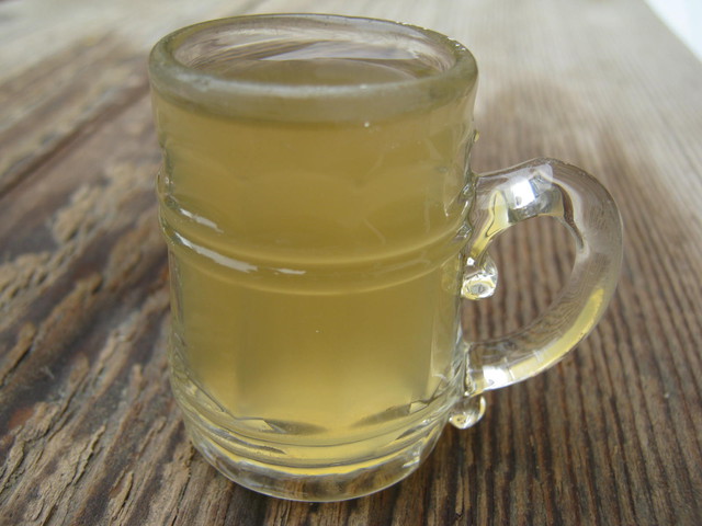 - 알코올을 넣고 따뜻한 곳에 14일 동안 두어 발효시킵니다. 2주 후, 두꺼운 거즈로 걸러 원하는 농도가 될 때까지 최소 5개월 동안 냉장 보관합니다.