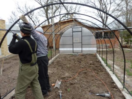 - 건설을 위해서는 플라스틱이나 금속 프로필로 만든 아치 5~6개, 폴리에틸렌 필름, 몇 미터의 와이어, 그리고 약 20개의 클램프가 필요합니다.
