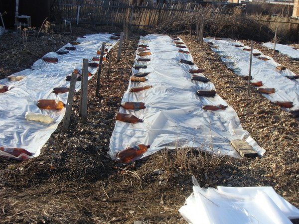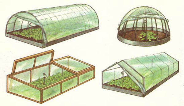 이 유형의 온실은 폴리에틸렌 필름이나 이와 유사한 재질로 덮인 화단으로 구성됩니다. 씨앗을 뿌리고 덮개를 씌우고, 가장자리는 벽돌과 나무판자로 눌러줍니다.