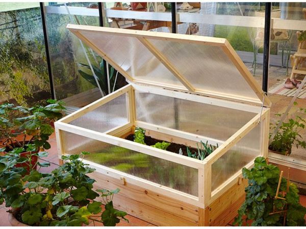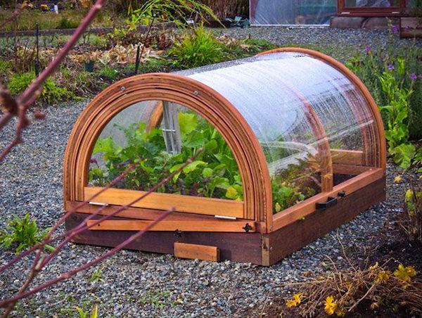 바닥이 없는 상자 모양의 구조물입니다. 덮개재로는 폴리에틸렌 필름이나 유리가 사용됩니다. 필요에 따라 부지 내 어디에나 설치할 수 있다는 점이 편리합니다. 주요 용도는 식물을 서리로부터 보호하는 것입니다.