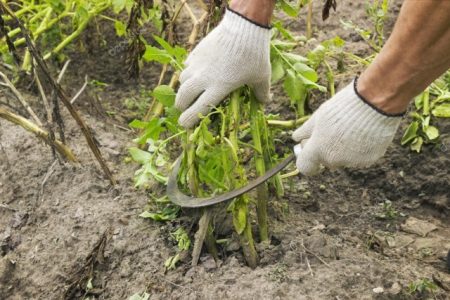 얼마 후, 정원사들은 실험 삼아 윗부분을 깎기 시작했지만, 아마도 편의를 위해 땅을 파기 전에만 깎았을 것입니다. 한편으로는 푸른 잎이 방해가 되지 않아 땅을 파기가 더 쉽습니다. 하지만 다른 한편으로는 손이 더 많이 가고 시간과 노력도 낭비되며, 결국 화단이 눈에 덜 띄게 됩니다. 일부 자료에서는 여전히 수확 전에 윗부분을 깎는 것을 권장합니다.