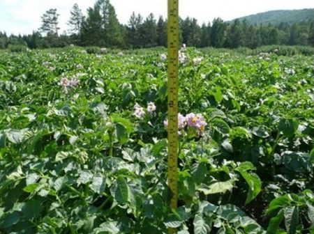 예를 들어, '나크라'나 '아드레타' 같은 감자 품종은 줄기가 꽤 높습니다. 줄기 높이가 50~80cm 정도면 이 품종의 감자는 정상적인 상태입니다. 잘 아는 감자 품종에서 갑자기 싹이 트기 시작하면 걱정할 필요가 없지만, 그런 일은 일어나지 않을 것입니다.